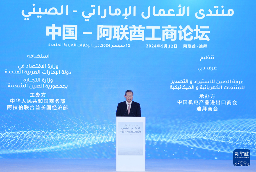 當(dāng)?shù)貢r(shí)間9月12日下午,國(guó)務(wù)院總理李強(qiáng)在迪拜出席中國(guó)-阿聯(lián)酋工商論壇并致辭。